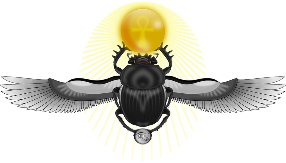 The scarab beetle is part of the visual symbol for Artists/Architects of KHEPERU (AOK). Ancient Kemetic in nature, it activates the image of self-creation, transformation, and rebirth. Other parts include the wings of Ma’at, the Eye of Horus, and the Ankh.